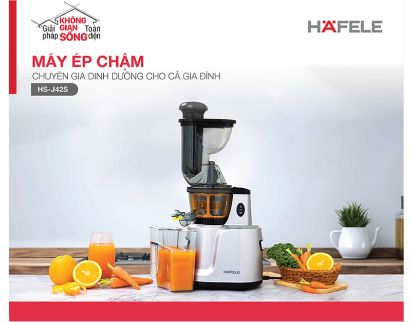 MÁY ÉP CHẬM CỠ LỚN HAFELE HS-J42S với tốc độ ép 60 vòng/phút, các sản phẩm máy ép chậm mới của Häfele sẵn sàng mang đến cho bạn và gia đình những ly nước ép