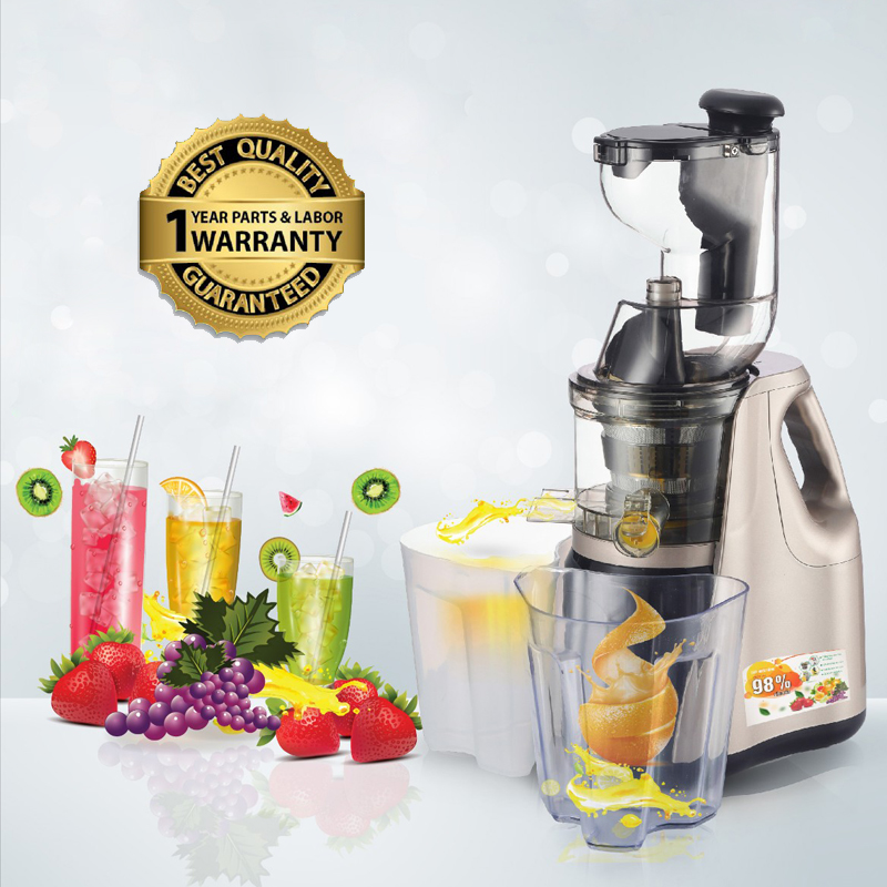 Ép kiệt hơn, giàu Vitamin và nhiều hương vị hơn! Đường kính khoang ép lớn lên đến 130mm, giúp ép nguyên quả dễ dàng mà không cần cắt nhỏ. Tốc độ quay chậm chỉ 40