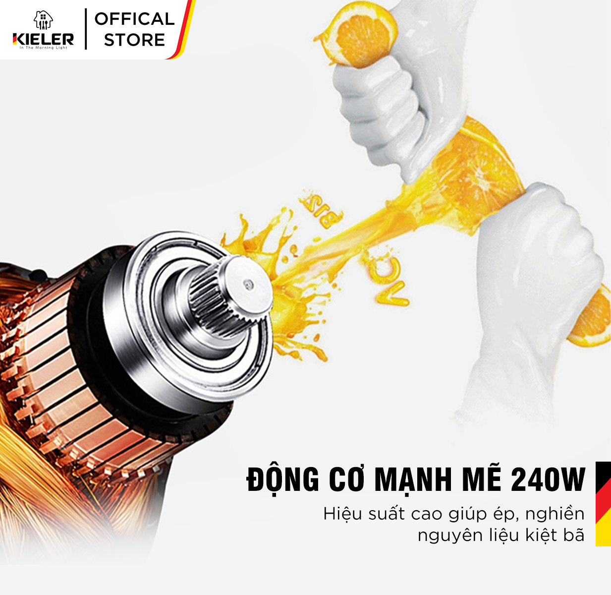 ƯU ĐIỂM SẢN PHẨM: - Động cơ 100% bằng đồng mạnh mẽ và bền bỉ - Công suất cực lớn 250W giúp nghiền nát các nguyên liệu cứng - Tốc độ ép