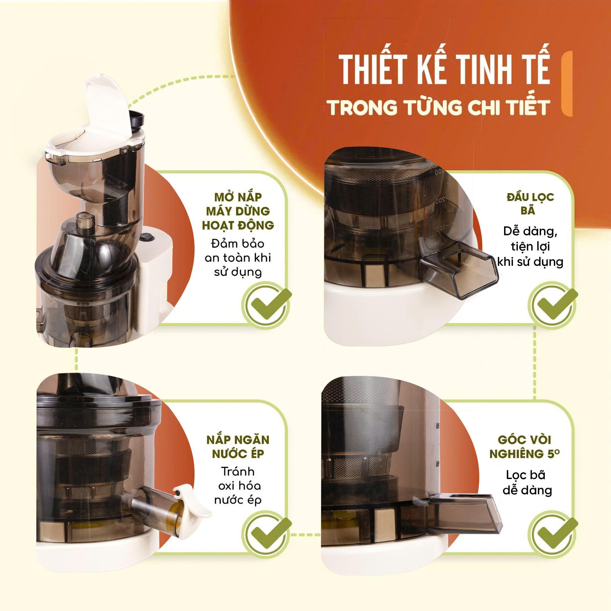 Uống nước ép mỗi ngày để da đẹp nè chị cả nhà ơi  Là một thiết bị đa chức năng được thiết kế để ép trái cây và rau quả bằng phương pháp ép chậm.
