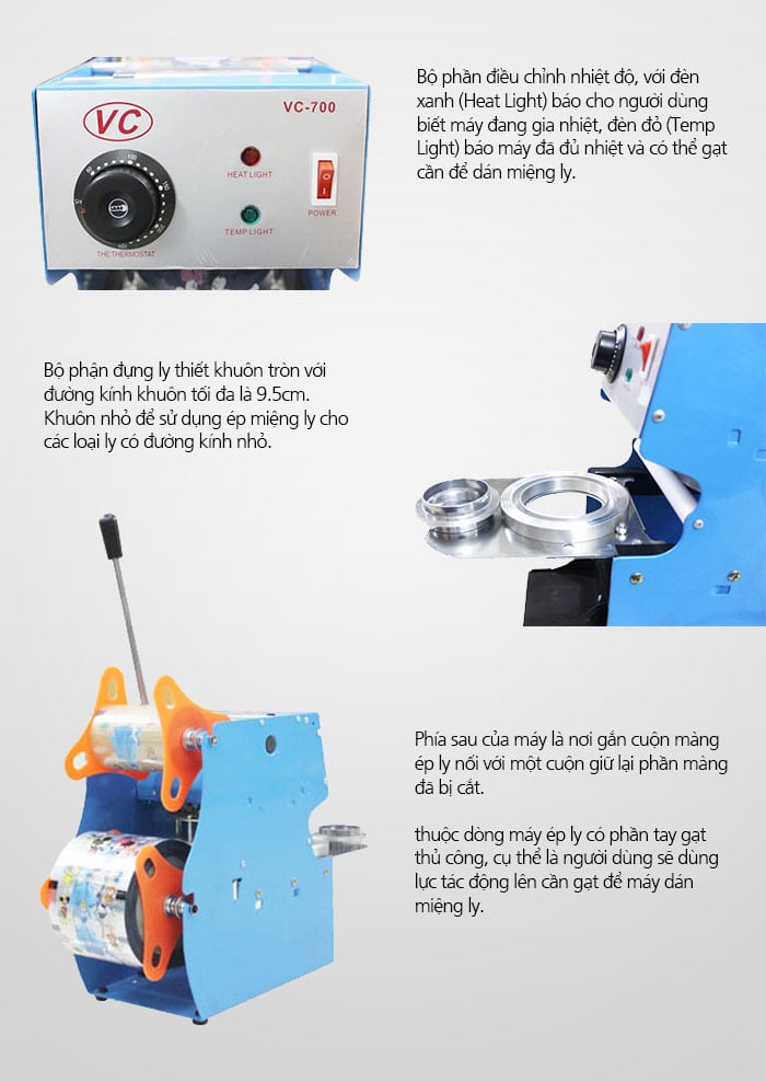 Những đặc điểm cấu tạo của máy ép miệng ly VC-700