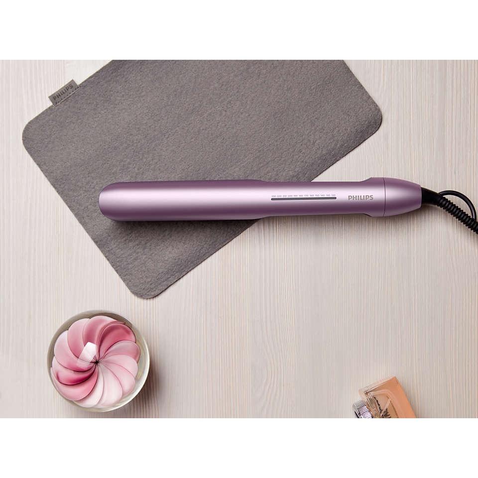 Các tấm kẹp 105 mm dài hơn cho phép tiếp xúc tốt hơn với tóc, giúp bạn có được mái tóc thẳng hoàn hảo dễ dàng hơn và trong thời gian ngắn hơn.