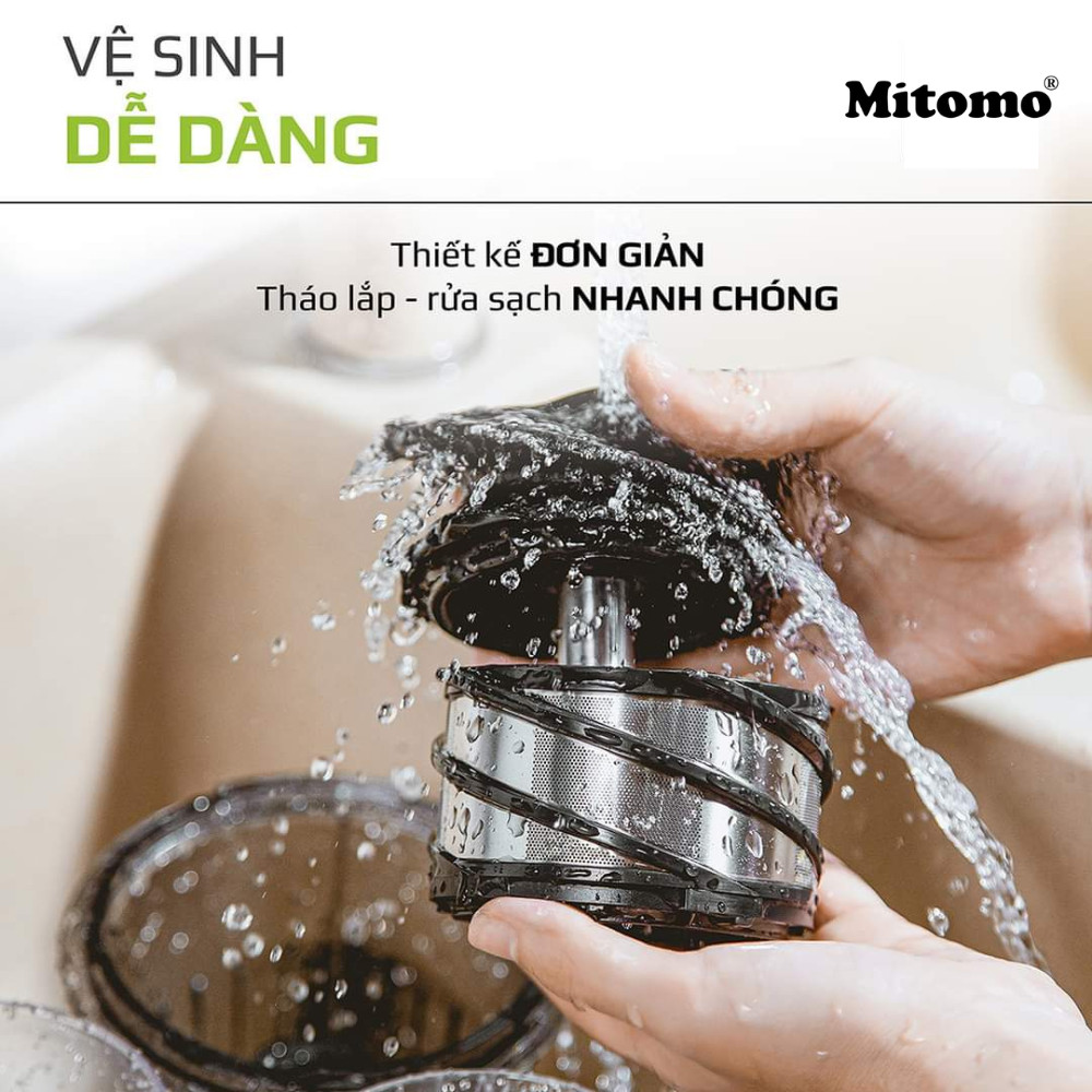 - Dễ dàng vệ sinh máy, tiện lợi mang theo Tính năng nổi bật của máy ép trái cây, máy ép chậm Mitomo chính hãng