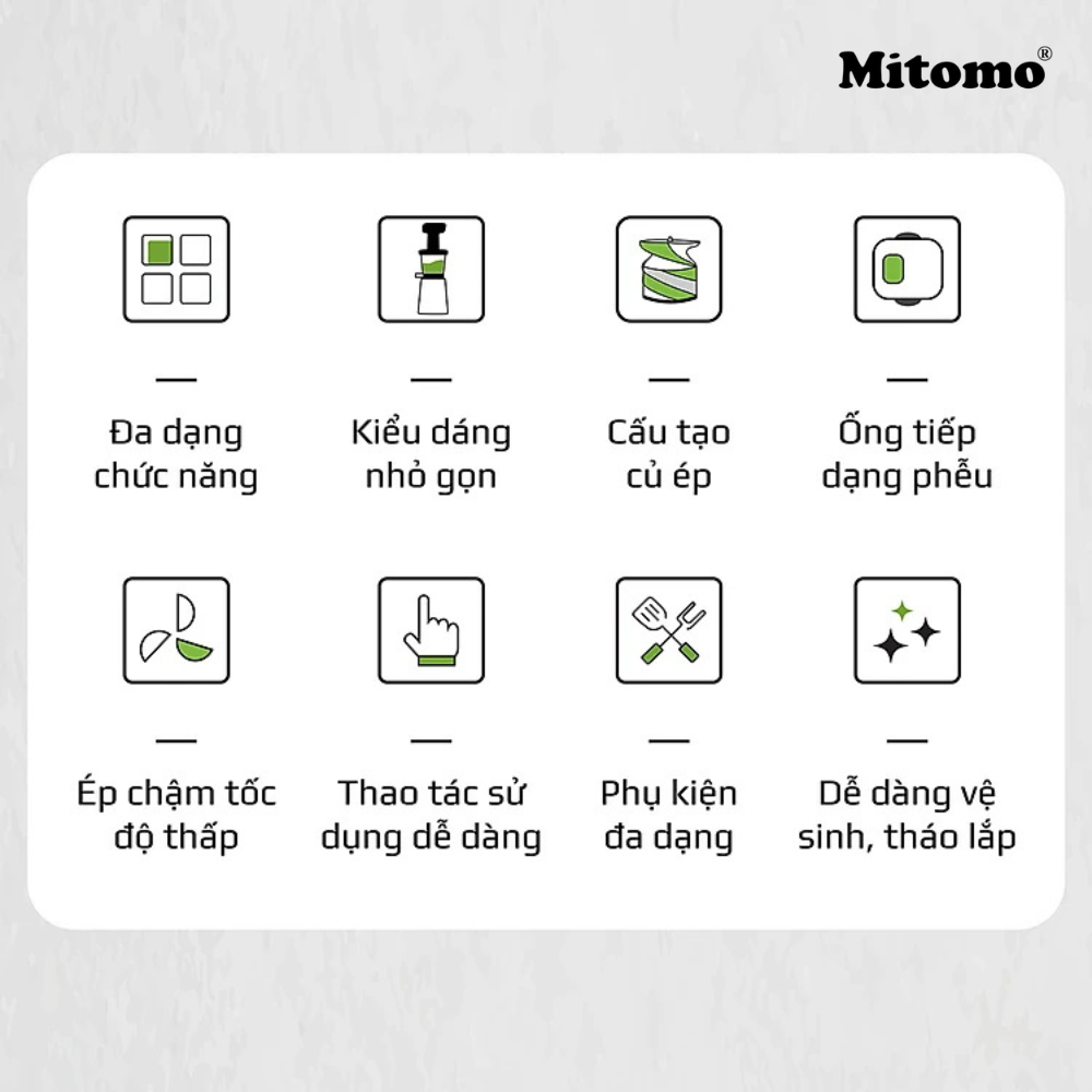 Máy ép trái cây, máy ép Mitomo chính hãng bảo hành 3 năm ( Trạm bảo hành toàn quốc ) Tặng kèm rây lọc và cọ vệ sinh cho máy Máy ép trái máy ép