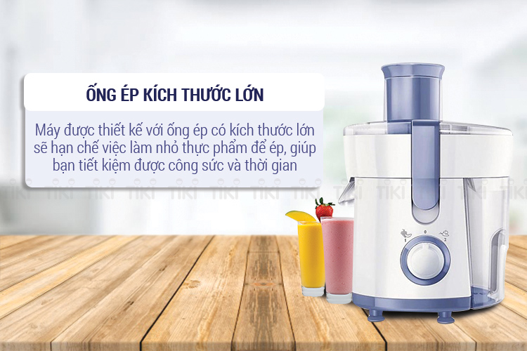 TÍNH NĂNG NỔI BẬT: - Máy ép nhanh hoạt động với công suất 320W cùng 2 tốc độ ép. - Điều khiển bằng nút xoay dễ thao tác. - Ống tiếp nguyên liệu đường kính 75 mm, dễ dàng