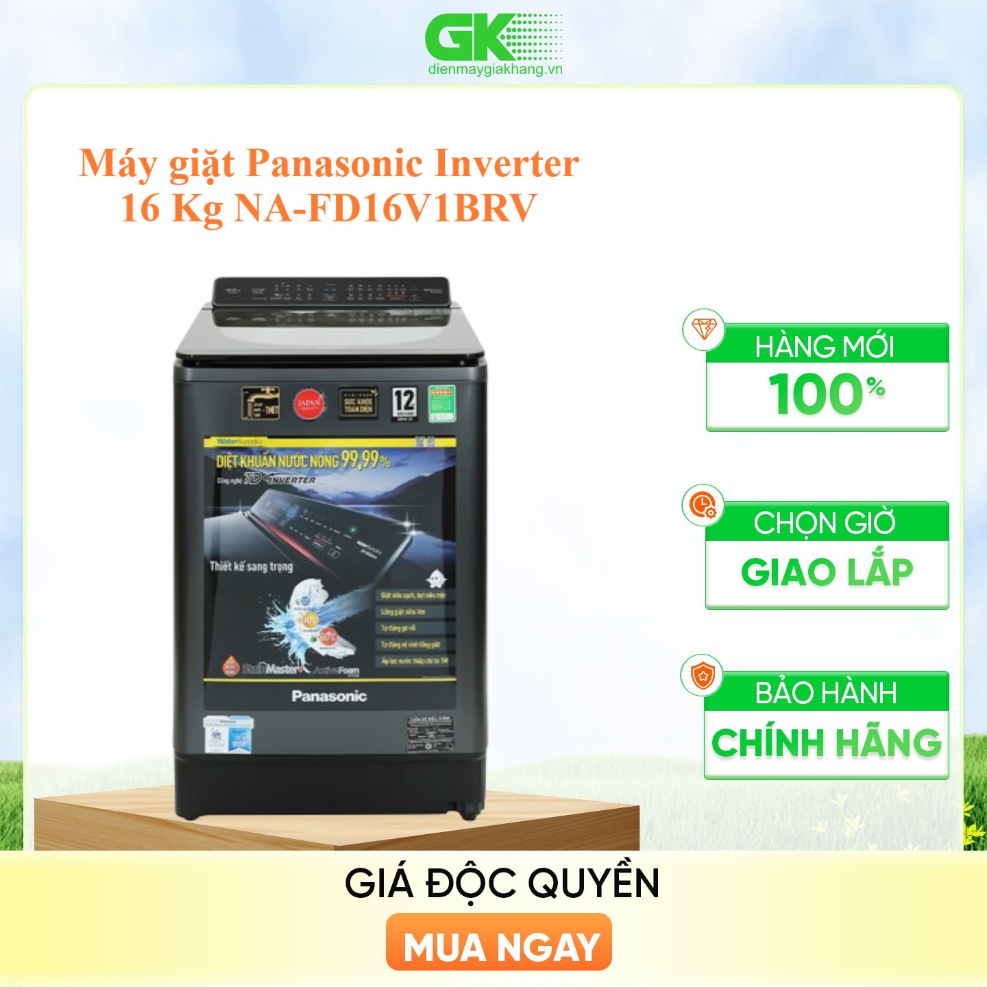 Công nghệ giặt nước nóng StainMaster+ ngăn ngừa các tác nhân gây dị ứng và diệt khuẩn 99.99% Từ sự thành công từ "người tiền nhiệm" StainMaster, công nghệ giặt nước nóng StainMaster+ được ra đời với những nâng cấp đáng giá giúp đánh bay những vết bẩn cứng đầu hơn như vết dầu mỡ, vết bẩn cổ và tay áo nhờ tác dụng của nước nóng.   Video chỉ mang tính chất minh hoạ   Đặc biệt hơn, chiếc máy giặt Panasonic này còn có thể diệt khuẩn, nấm mốc và các tác nhân gây dị ứng lên đến 99.99% khi giặt tại 60 độ C, giúp cho quần áo của gia đình bạn sạch sẽ và thơm tho, rất có lợi cho em bé và những người có làn da nhạy cảm. Hình ảnh chỉ mang tính chất minh hoạ Công nghệ giặt nước nóng StainMaster+ đã được viện Công nghệ sinh học Việt Nam kiểm định và chứng nhận về khả năng diệt 99.99% vi khuẩn thường bám trên sợi vải. Viện Công nghệ sinh học (Institute of Biotechnology, IBT), trực thuộc Viện Hàn lâm Khoa học và Công nghệ Việt Nam (Vietnam Academy of Science and Technology, VAST), là một viện nghiên cứu đầu ngành về công nghệ sinh học ở Việt Nam. Viện có đội ngũ đông đảo các nhà khoa học được đào tạo chuyên sâu ở trong và ngoài nước về các lĩnh vực khác nhau của công nghệ sinh học hiện đại.   Dễ dàng sử dụng với bảng điều khiển hiện đại và lồng giặt có kích thước lớn Máy giặt Panasonic Inverter NA-FD16V1BRV có bảng điều khiển đặt phía sau, với độ nghiêng nhất định giúp cải thiện góc nhìn giúp bạn dễ dàng quan sát và thao tác. Lồng giặt có kích thước lớn, người dùng có thể dễ dàng cho chăn màn vào giặt. Với thiết kế đặc biệt, giúp bạn dễ dàng chạm vào đáy lồng để lấy các món đồ nhỏ hay phụ kiện mà không cần nhón gót. Video chỉ mang tính chất minh hoạ Nắp lồng giặt chắc chắn, không lo kẹt tay nhờ khả năng chống sập Nắp của chiếc máy giặt này được làm từ kính cường lực cứng cáp, cùng khả năng chống sập giúp cho người dùng có thể đóng mở nhẹ nhàng hơn, hạn chế việc kẹt tay khi cửa sập bất ngờ. *Hình ảnh chỉ mang tính chất minh hoạ Động cơ TD Inverter cho khả năng hoạt động mạnh mẽ