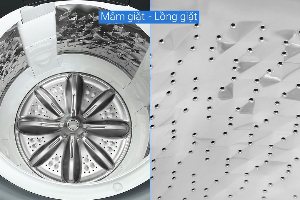 Đặc điểm nổi bật - Khối lượng giặt 9 kg thích hợp với gia đình từ 3 đến 5 thành viên.  - Công nghệ giặt Aroma lưu giữ hương thơm dài lâu cho quần áo.  - Mâm giặt kháng khuẩn ABT, có khả năng kháng khuẩn giúp bảo vệ sức khỏe gia đình.  - Lồng giặt Pillow dạng gối, dễ dàng giặt sạch quần áo, hạn chế xơ vải.  - Đa dạng chương trình hoạt động nên hỗ trợ việc giặt giũ trở nên dễ dàng hơn ​Tổng quan - Loại máy giặt:Cửa trên - Lồng giặt:Lồng đứng - Khối lượng giặt:9 Kg - Số người sử dụng:Từ 3 - 5 người - Kiểu động cơ:Truyền động gián tiếp (dây Curoa) - Tốc độ quay vắt tối đa:700 vòng/phút - Chất liệu lồng giặt:Thép không gỉ - Chất liệu vỏ máy:Kim loại sơn tĩnh điện - Chất liệu nắp máy:Kính cường lực - Sản xuất tại:Việt Nam - Năm ra mắt:2024 -
