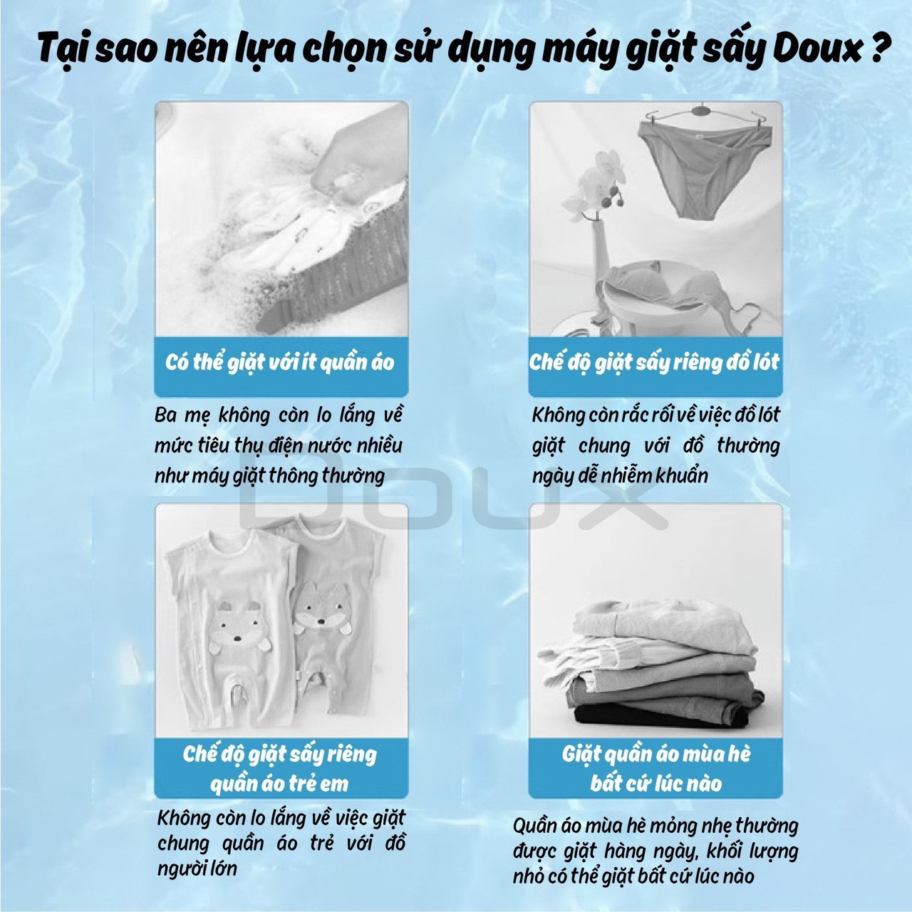 ✨MÁY GIẶT SẤY MINI DOUX 12 CHỨC NĂNG LUX DX-1335 BẢN NÂNG CẤP 2023 CÓ CHỨC NĂNG SẤY HÀNG CHÍNH HÃNG