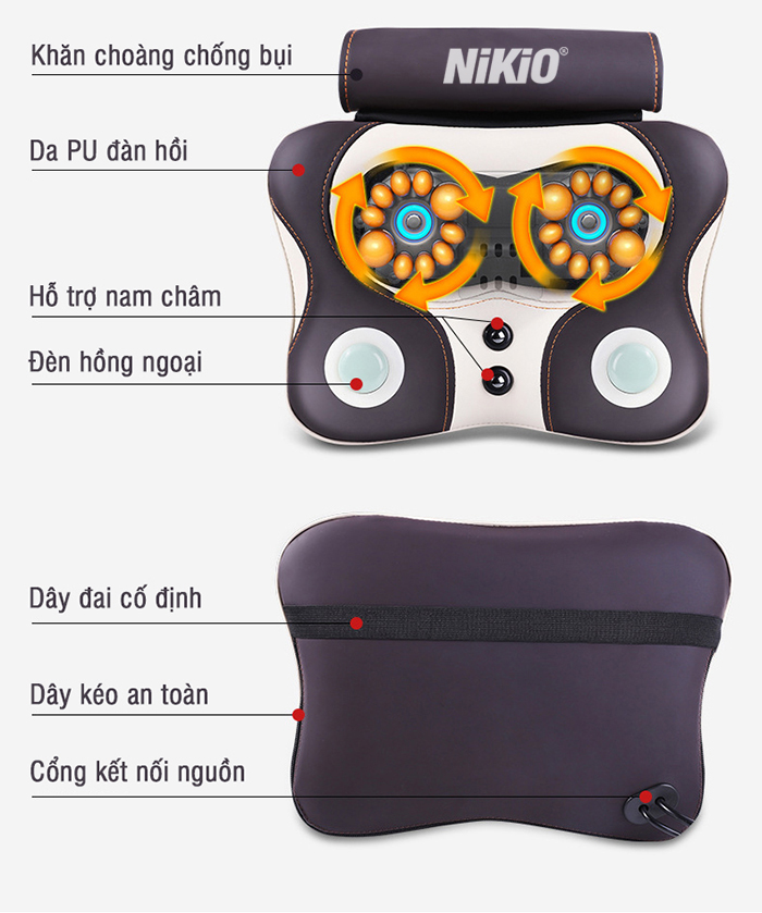 Thông số kỹ thuật của Gối massage toàn thân xoay đấm bóp cổ vai gáy, lưng Nikio:
