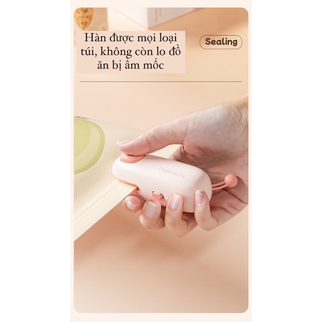 Mua tại TiktokMáy Hàn Miệng Túi Cầm Tay Cute, Máy Ép Miệng Túi Đồ Ăn Vặt Sạc Pin Tích Hợp Nam Châm Kèm Đầu Cắt Tiện Dụng - Hàng Chính Hãng MINIIN