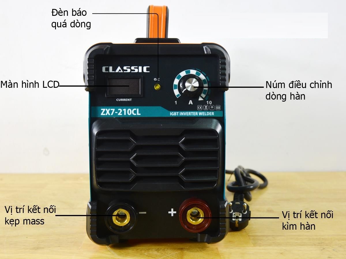 -Máy hàn que Classic ZX7-210CL có trang bị màn hình hiển thị cường độ dòng hàn giúp người thợ dễ dàng điều chỉnh phù hợp với nhu cầu sử dụng. Ngoài ra máy còn vận hành êm ái, khi hàn không bắn tung tóe gây khó chịu cho những người xung quanh.