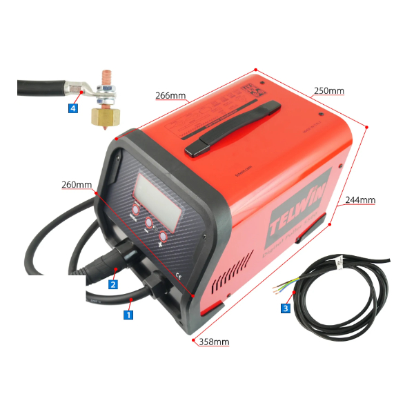 THÔNG TIN SẢN PHẨM 1pha-230V. 6,9KVA Dòng hàn ra 20-160A Kìm hàn với 1,5M cáp 16mm² Hàn que 3,2 liên tục Kẹp mass với 1,5M cáp 16mm² Hàn que 4,0 đính Trọng lượng 5,5kg Phụ