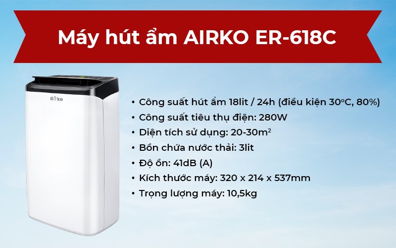 Giới thiệu máy hút ẩm Airko ER-618C Công suất 18 lít/ngày