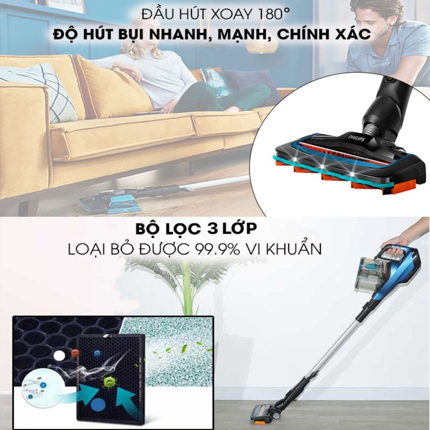 Mua tại TiktokMáy hút bụi cầm tay không dây dạng cán 3 trong 1 SpeedPro Aqua thương hiệu Philips FC6730/81 - Hàng Chính Hãng Máy hút bụi SpeedPro Aqua Philips FC6730/81 sở hữu nhiều ưu điểm vượt trội như khả năng làm sạch nhanh chóng, bộ lọc loại bỏ 99% vi khuẩn cùng công nghệ Power Cyclone 7 duy trì hiệu suất ổn định giúp người dùng có thể vệ sinh nhà cửa hiệu quả, từ đó mang đến những phút giây thư giãn tuyệt vời. Hút nhanh. Kết hợp hút bụi, lau sàn và có tay cầm
