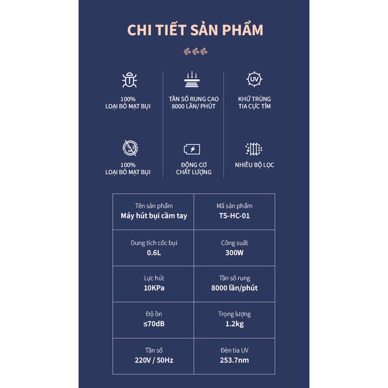 - Chức năng hút bụi mịn: Lọc bụi mịn + khử trùng