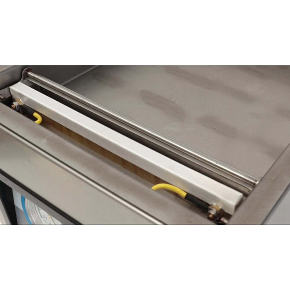 - Vỏ ngoài của máy được làm bằng thép không gỉ. Các thông số kỹ thuật cần thiết cho việc đóng gói sản phẩm có thể được lập trình trước. Khi nhấn nắp buồng hút chân không, toàn bộ quá trình đóng gói chân không được hoàn thành theo chương trình tự động. Nắp máy được làm bằng tấm mica trong suốt hoàn toàn giúp quan sát dễ dàng về quy trình đóng gói hút chân không.