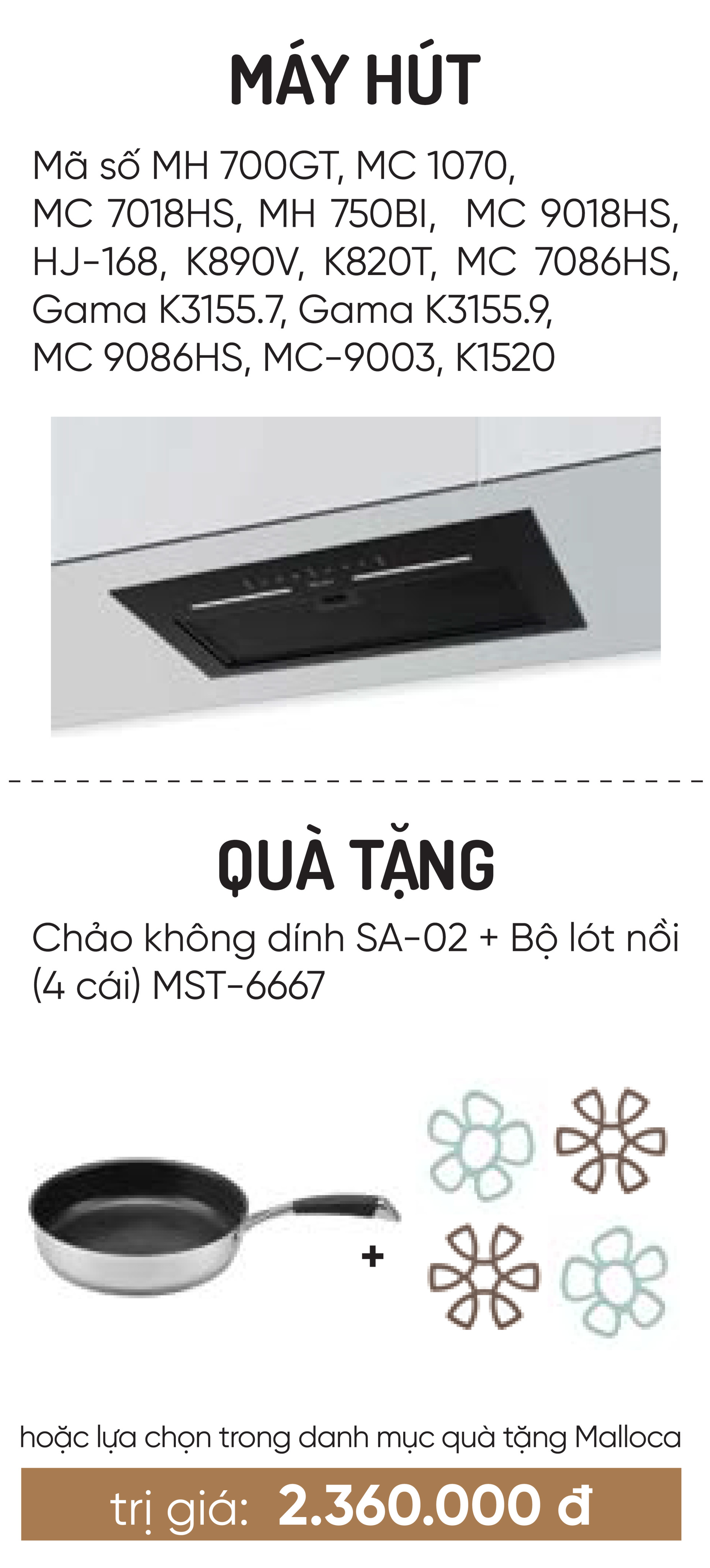 ✨Máy hút khói khử mùi âm tủ MH 700GT - Tặng Chảo không dính SA-02 + Bộ lót nồi (4 cái) MST-6667 - Hàng chính hãng