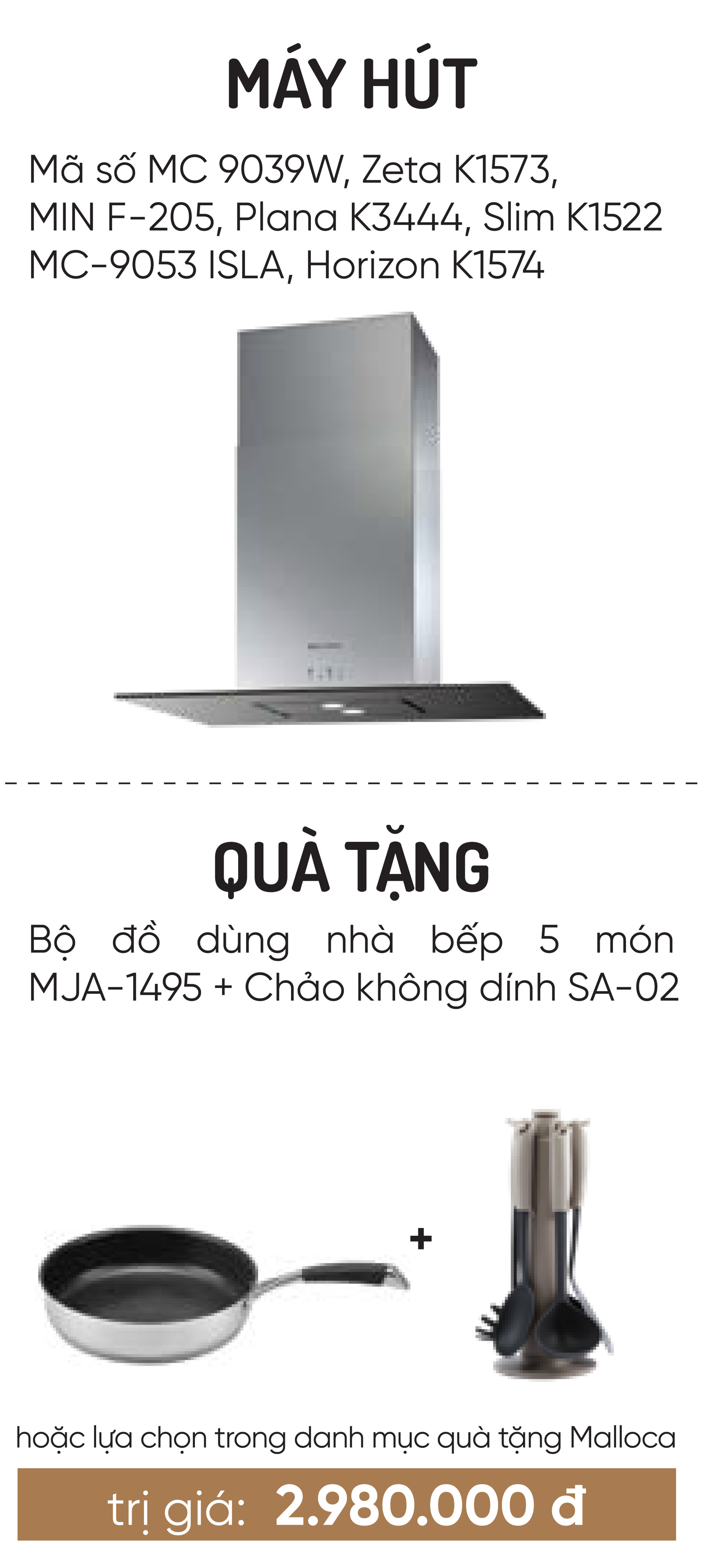 KIMQUOCTIEN.COM I Máy hút khói khử mùi Malloca MIN F-205 + Bếp điện từ kết hợp Malloca MIR 772