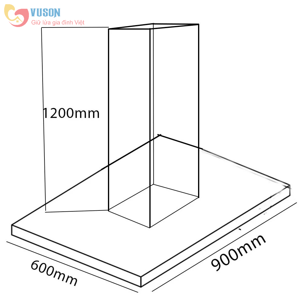 Kích thước 900x600/1200 mm phù hợp với nhiều không gian bếp.