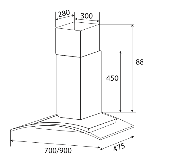 Thông số kỹ thuật: • Máy hút mùi kính cong • Thân máy bằng inox sáng đẹp • Kính cường lực dày 08mm tráng men bóng cao cấp • Điều khiển phím bấm 3 tốc