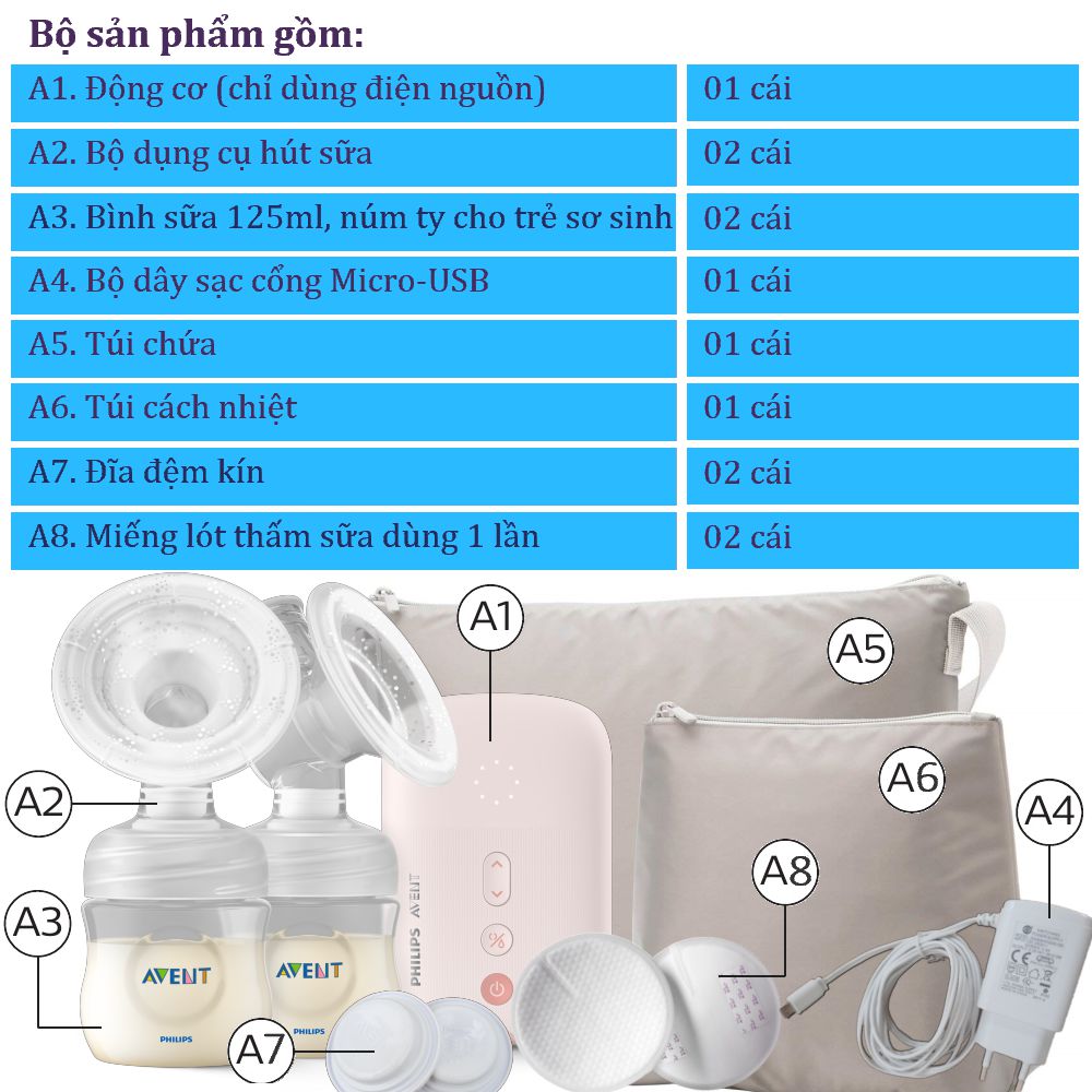Thiết kế và công dụng - Có thể hút đôi hoặc đơn: điều này rất tiện lợi cho mẹ lựa chọn khi bé bú 1 bên mà 1 bên chưa bú hết, bản chỉ cần