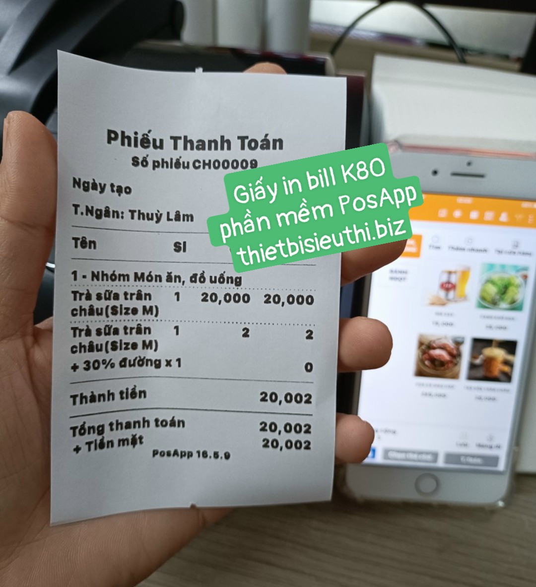 Máy in chốt đơn Livestream, In bill K80 kết nối điện thoại