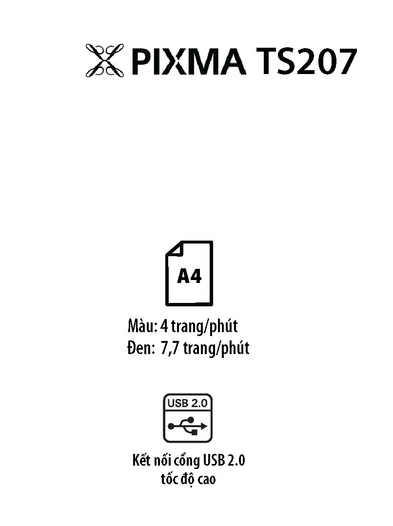 PIXMA TS207Máy In Nhỏ Gọn Và Thời Trang Với Hộp Mực Chi Phí ThấpPIXMA TS207 kết hợp giữa bề mặt chống bám vân tay và chống xước với tính năng hoàn hảo như ngoại hình của máy.InTốc độ in (A4) tiê...