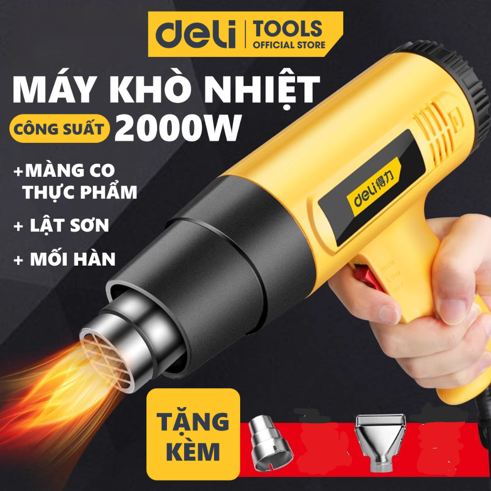 ✨Máy Khò Nhiệt Khò Hơi Nóng Deli Cao Cấp Công Suất Cao 2000W - Co Màng Cơ Đóng Gói Hàng Hóa - Khò Thực phẩm - Sơn Tường