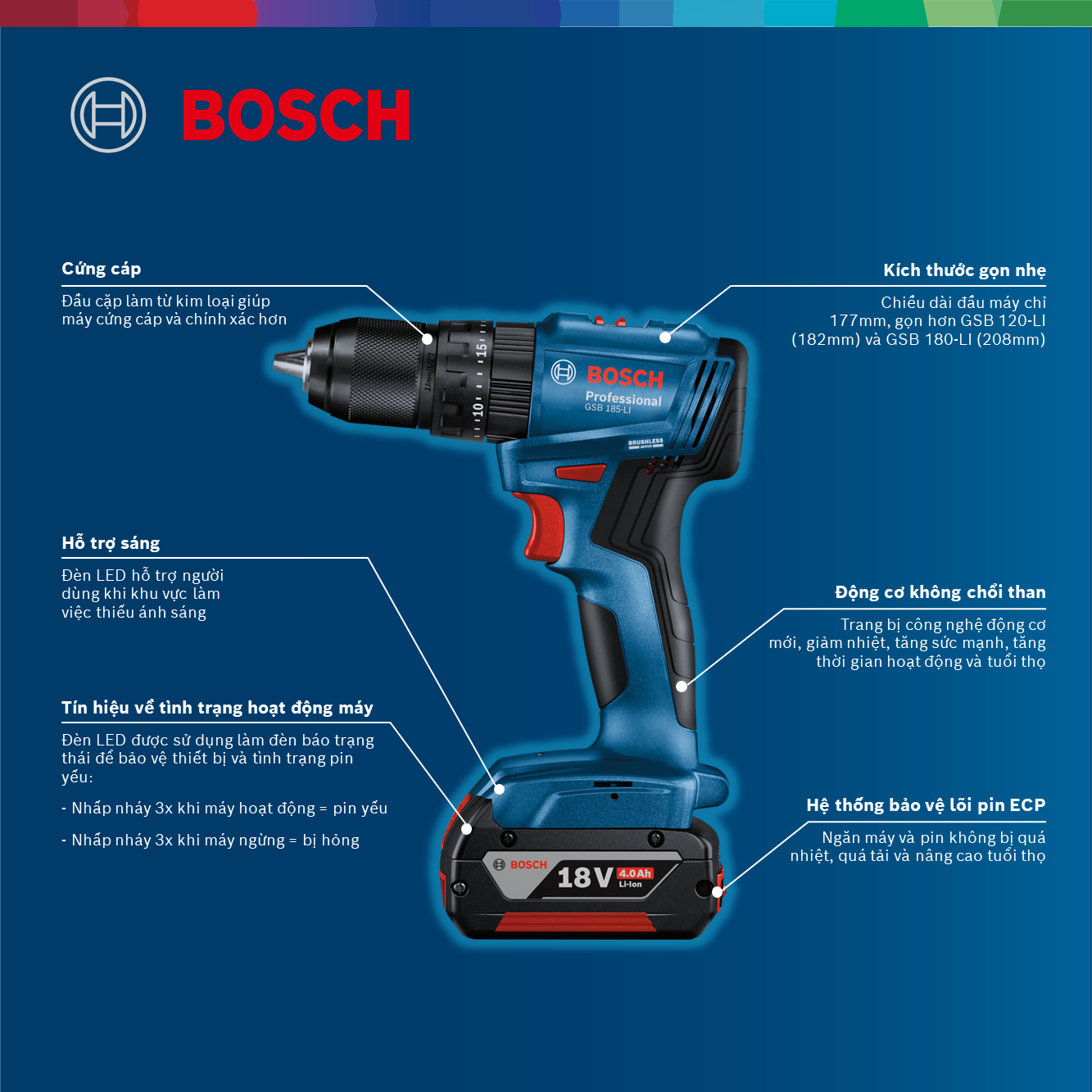 Máy khoan động lực dùng pin GSB 185-LI tạo sự thoải mái làm được nhiều công việc hơn