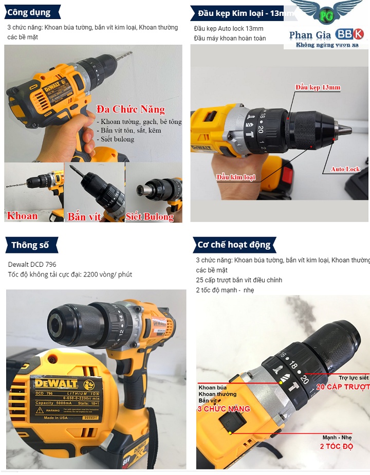 Dewalt được biết đến là thương hiệu cung cấp dụng cụ cầm tay nổi tiếng đến từ Mỹ. Với lịch sử phát triển lâu đời, chất lượng sản phẩm tốt, độ bền cao giúp sản