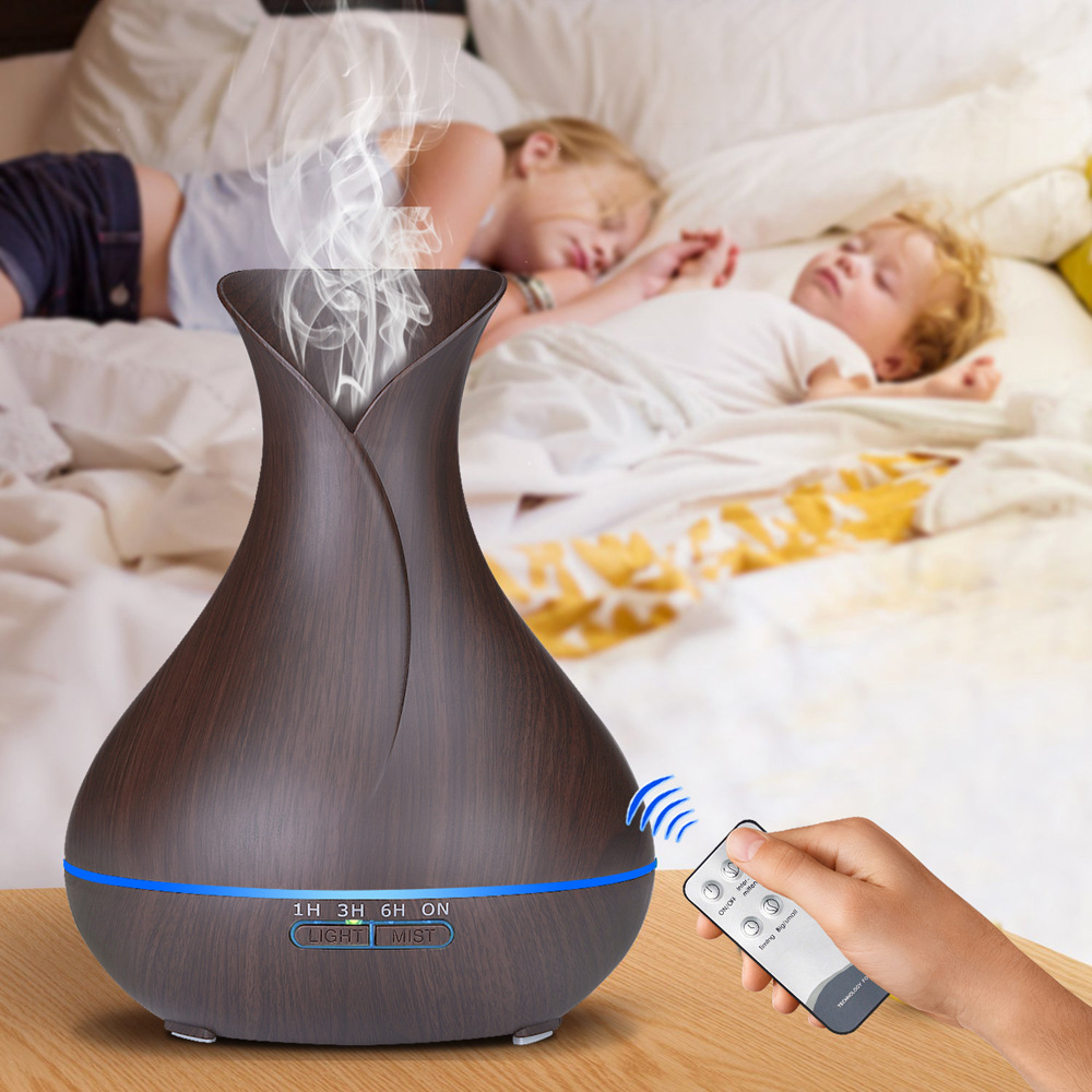 Máy phun sương tinh dầu Tạo Ẩm Khuếch Tán Tinh Dầu Kèm Đèn, không gây ồn, tặng kèm điều khiển từ xa và tinh dầu TOKI MORI - Kiểu dáng thanh lịch phù