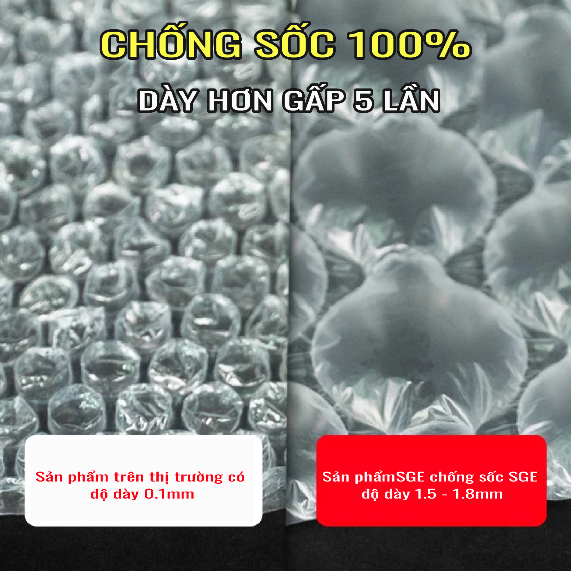 Chống sốc 100%, dày hơn các loại bóng chống sốc thông thường trên thị trường.