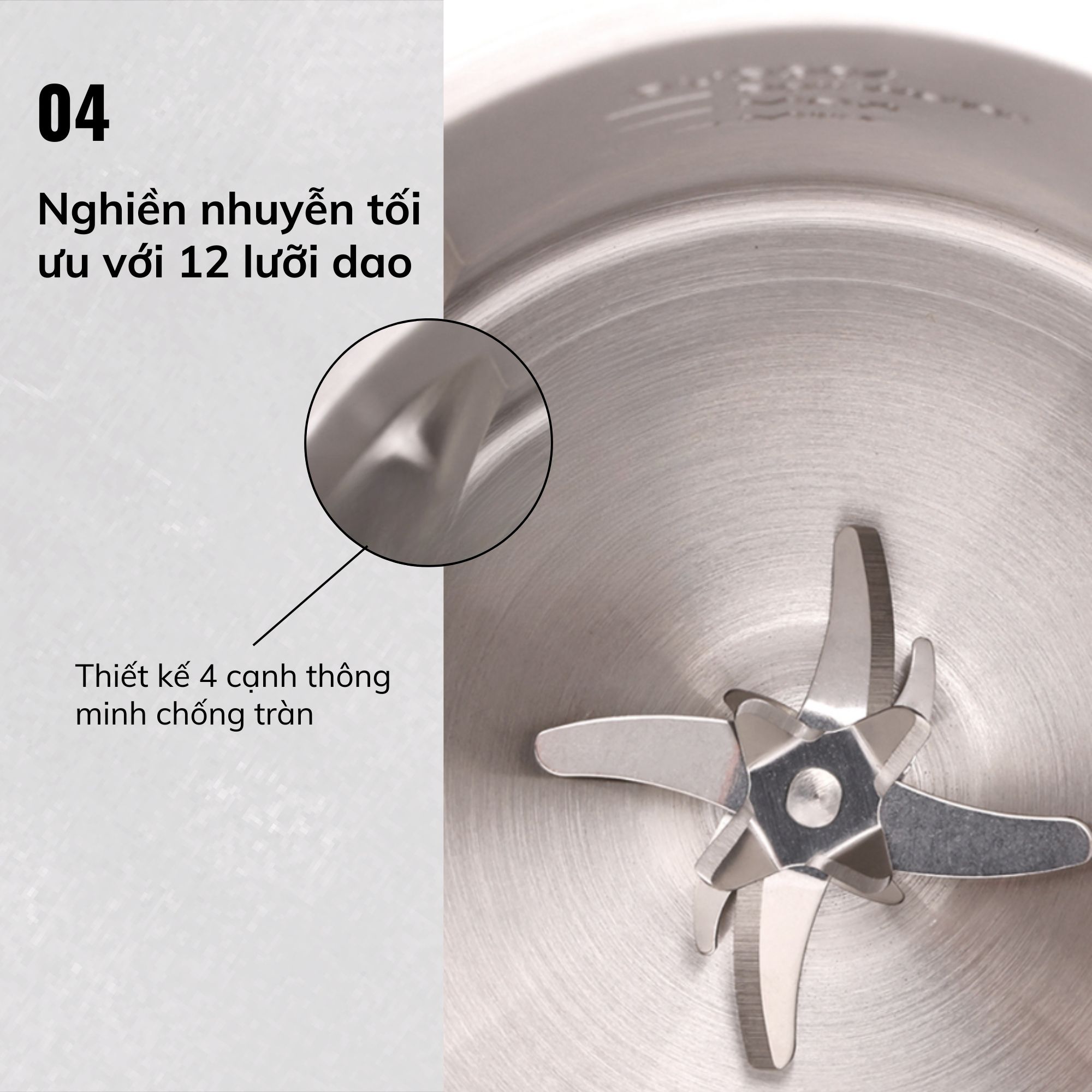 Cối xay Advance 1.4l 48OZ với lưỡi dao bằng thép cải tiến với độ bền cao Cối xay được làm tự nhựa không chứa BPA với thiết kế đặc biệt giúp giảm thiểu hao