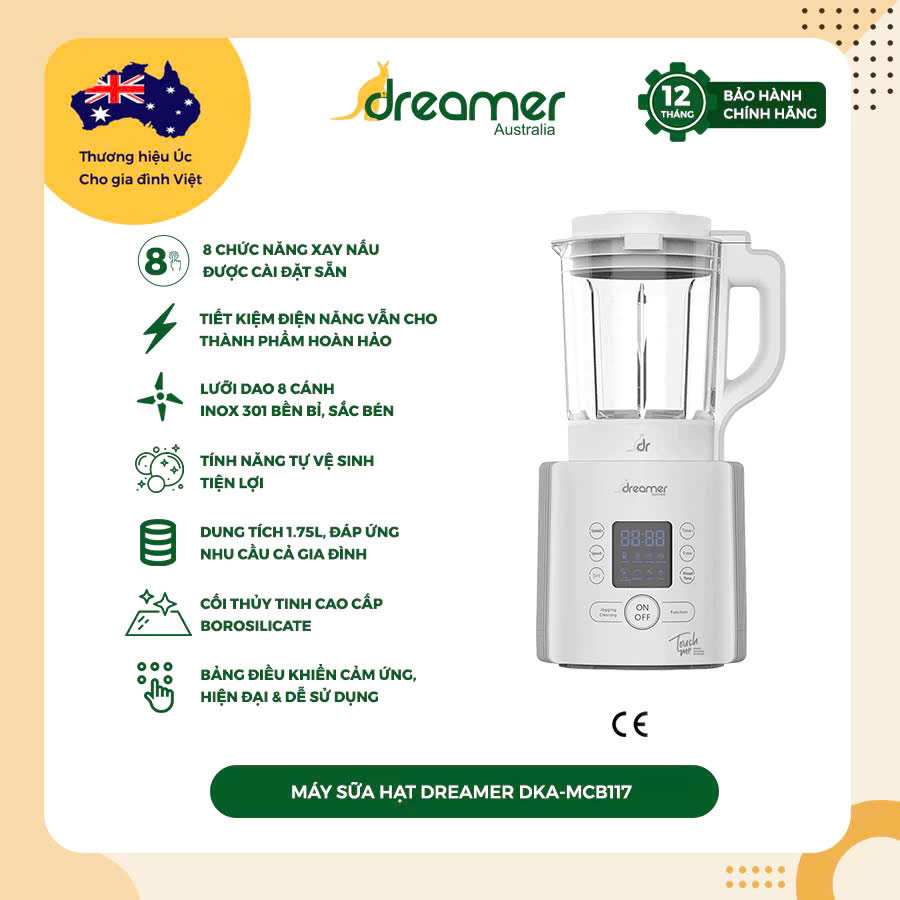 Mua tại TiktokMáy làm sữa hạt DREAMER là một trong những thiết bị gia dụng cần thiết cho gian bếp của mỗi gia đình. Với thiết kế tinh tế, kết hợp lưỡi dao 301 siêu bén là 1 “chiến binh” xay nấu vô cùng mạnh mẽ. DKA- MCB117 sẽ mang đến cho gia đình bạn những ly sữa hạt thơm ngon, nguyên chất cùng những món ăn, loại xốt cực healthy. Máy xay nấu đa năng là trợ thủ đồng hành cùng bạn cho phong cách sống lành mạnh chỉ với 1-23 phút cho 1 lần xay nấu mỗi ngày.