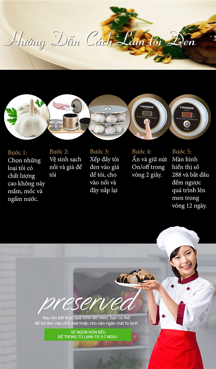 • Nâng cao thể trạng, bồi bổ cơ thể, đặc biệt ở người cao tuổi. Hướng dẫn sử dụng máy làm tỏi đen Tiross: