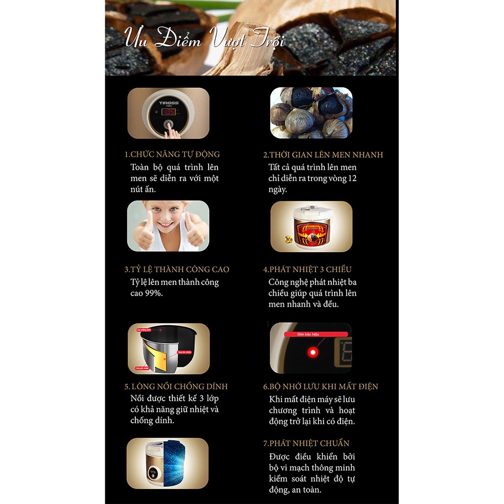 Máy làm tỏi đen TIROSS TS906 giúp bạn lên men tỏi tại nhà tự động mà không mất nhiều thời gian, xác suất hiệu quả thành công cao hơn các cách làm tỏi đen thông thường.