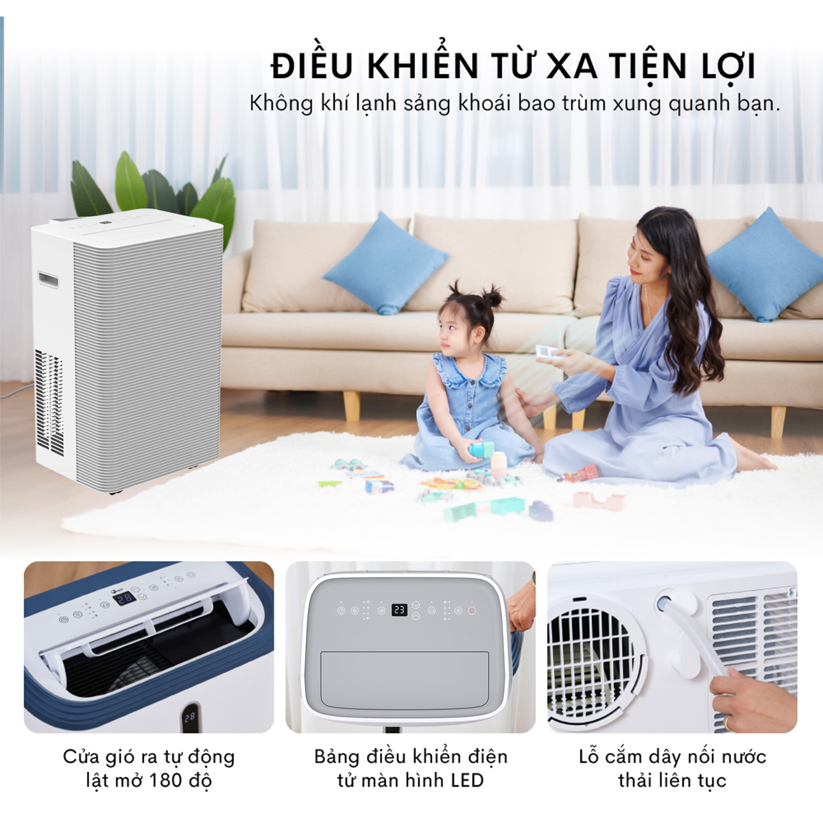 Máy điều hòa di động thông minh FUJIHOME-Công nghệ Nhật Bản >> Máy lạnh di động 4 trong 1: làm lạnh, hút ẩm, quạt, lọc không khí <<<