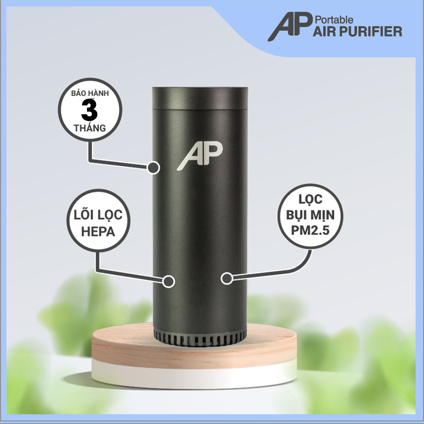 Mua tại TiktokMÁY LỌC KHÔNG KHÍ CHO Ô TÔ/ XE HƠI AIR PURIFIER Máy Lọc Không Khí Ô Tô AP là máy Lọc Không Khí Và Khử Mùi mini và đa năng dành riêng cho không gian Ô Tô, Xe Hơi, Văn Phòng, Phòng Ngủ với Lõi Lọc HEPA 3 lớp. Giúp bạn đánh bay bụi mịn PM2.5 và các loại mùi khó chịu trong ô tô trong tích tắc. TẠI SAO CẦN PHẢI SỞ HỮU NGAY MÁY LỌC KHÔNG KHÍ Ô TÔ AP? Tình trạng ô nhiễm không khí tại những đô thị lớn ngày càng trầm trọng hơn trong những năm gần đây. Đối với những ai phải thường xuyên di chuyển ở trong các thành phố lớn thì đã đến lúc bạn phải trang bị một máy lọc không khí đặt trong ô tô/ xe hơi. Bạn có biết không khí trong xe ô tô luôn tích tụ nhiều bụi bẩn và mùi hôi khiến cho bạn cảm thấy mệt mỏi và nhức đầu? Vì xe ô tô là không gian kín, khói bụi khi từ bên ngoài lọt vào thường không thoát ra ngoài triệt để. Vì vậy, Máy lọc không khí mini dành cho ô tô AP giúp bạn ngăn ngừa các loại bụi bẩn độc hại tích tụ và bám trong xe gây bệnh cho con em và chính bản thân bạn. THIẾT KẾ TỐI GIẢN – VẬT LIỆU CAO CẤP: Về tổng thể, Máy lọc không khí cho ô tô AP có thiết kế cực kỳ tối giản với chỉ một nút duy nhất ở mặt trên máy khiến cho máy trở nên gọn gàng. Thân máy được thiết kế tối giản do loại bỏ các bộ phận, chi tiết không cần thiết. Kích thước máy nhỏ gọn chỉ 6.5 x 17.2 cm khiến cho máy có thể chìm vào trong không gian nội thất xe của bạn mà không gây ra sự nổi bật quá lớn. Hộp máy sang trọng, trang nhã thích hợp làm quà tặng cho những người thân yêu của bạn. Toàn bộ máy được sơn màu đen mờ mang đến ấn tượng mạnh mẽ ở ánh nhìn đầu tiên. Chính thiết kế này mang đến vẻ thể thao, năng động nhưng không kém phần sang trọng cho xe của bạn. Kích thước máy nhỏ gọn có thể lắp đặt được bất cứ nơi đâu, tại băng ghế trước hoặc băng ghế sau đều có thể mang tới hiệu quả giống nhau. CẤU TẠO ĐƠN GIẢN – HOẠT ĐỘNG MẠNH MẼ Máy lọc không khí cho ô tô AP tuy có thân hình nhỏ gọn nhờ vào sự sắp xếp hợp lý của các bộ phận cấu thành nên một máy lọc không khí hoàn chỉnh.
