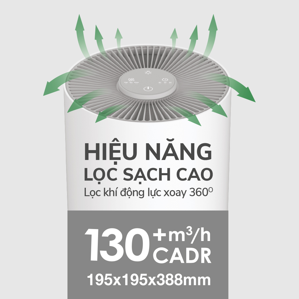 - Màng lọc than hoạt tính: loại bỏ khí độc hại, mùi khó chịu như khí thải, khí gas, mùi thức ăn, mùi ẩm mốc.Máy lọc không khí 3 mức độ lọc Máy lọc không khí Lock&Lock ENP126WHT có công suất 23W hoạt động hiệu quả trong phạm vi lọc dưới 23m². Cùng với đó là 3 mức độ lọc: nhẹ - vừa - mạnh, tùy vào tình trạng chất lượng không khí mà bạn chọn mức độ lọc cho phù hợp. Bảng điều khiển cảm ứng Bảng điều khiển cảm ứng dễ dàng tuỳ chỉnh các mức độ lọc, hẹn giờ và đèn LED chiếu sáng. Chế độ hẹn giờ tiện dụng Hẹn giờ lên đến 8 tiếng kiểm soát theo ý muốn thời gian máy lọc không khí chạy trước khi tự động tắt nguồn (2 tiếng, 4 tiếng hoặc 8 tiếng). Nhiều tiện ích thiết thực khác Chiếc máy lọc không khí Lock&Lock ENP126WHT có luồng khí 360 độ giúp lọc sạch không khí hiệu quả. Báo hiệu thay bộ lọc giúp bạn nhận biết được thời gian thay thế bộ lọc và đảm bảo chất lượng lọc khí của máy. Đèn báo hoạt động hiển thị các chức năng giúp bạn dễ dàng tùy chỉnh theo nhu cầu sử dụng. Đèn LED hỗ trợ chiếu sáng ban đêm có thể dùng như đèn ngủ, bạn có thể tùy chỉnh độ sáng của đèn vô cùng đơn giản.