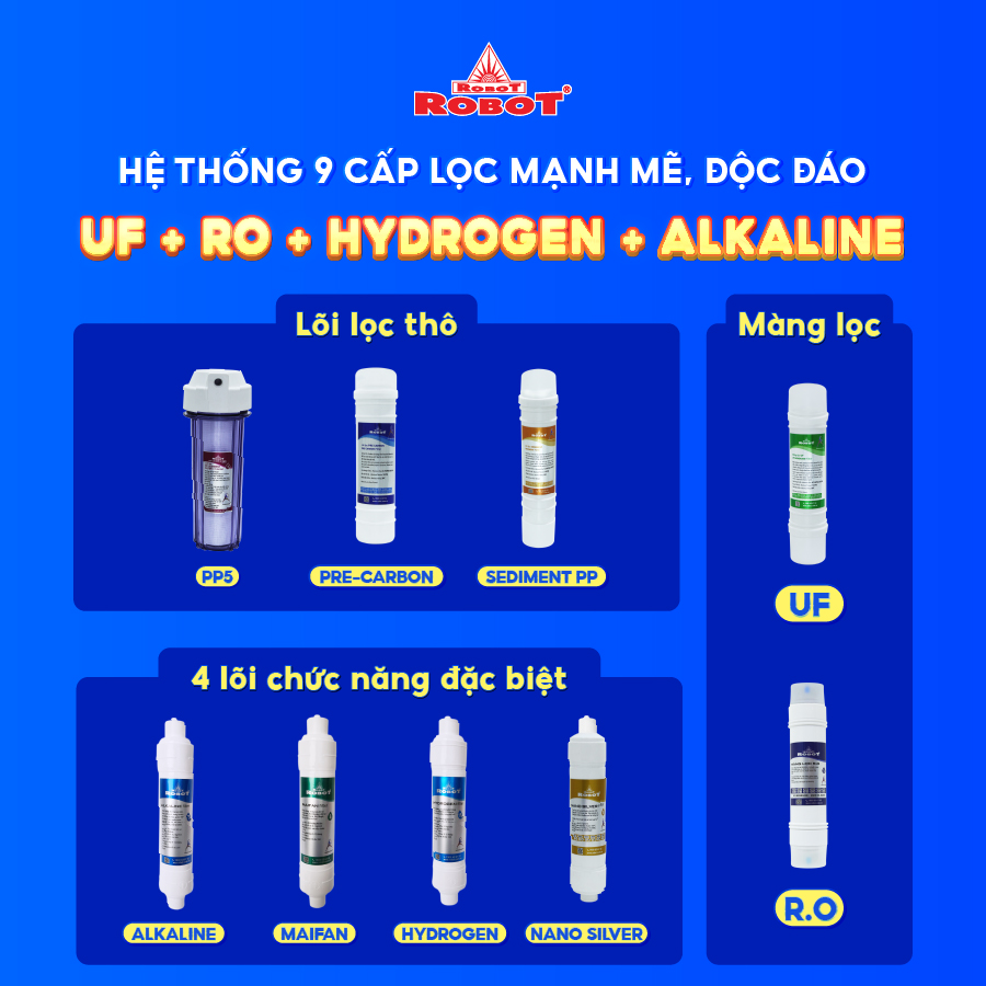 Máy lọc nước Robot - Tích hợp công nghệ lọc tiên tiến R.O + UF + Hydrogen