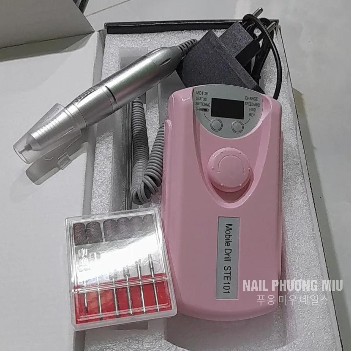 Máy Mài Móng Tích Điện STE-101 Màu Đen, Hồng Tặng Kèm 6 Đầu Mài Làm Nail Siêu Êm, Màn Hình LED, Nút Xoay Mobile Drill STE101 Pin Khỏe Đến 10h, Tốc Độ Cao 30.000 Vòng/phút
