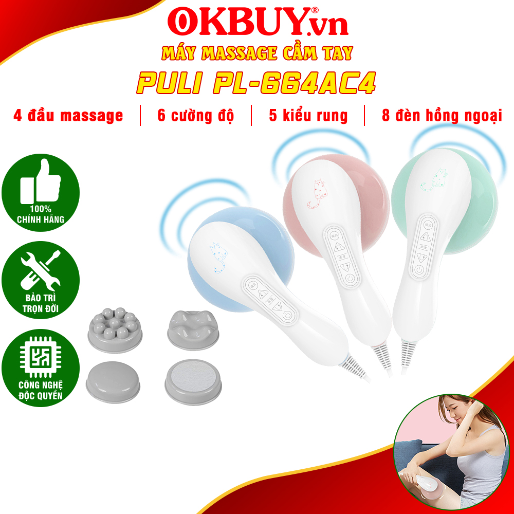 Máy massage cầm tay 4 đầu Puli PL-664AC4 - 5 kiểu rung, mát xa giảm đau nhức toàn thân