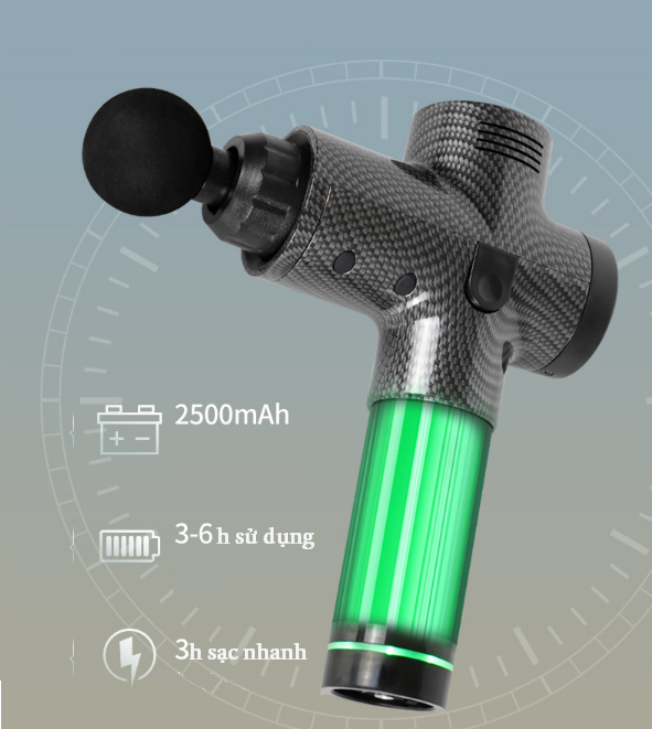 - Có 4 đầu massage: đầu hình cầu, đầu chữ U, đầu phẳng, đầu hình trụ - Tốc độ động cơ: 3200 PRM - Thời gian sạc 3h - Dung lượng pin: 2000 mAh -