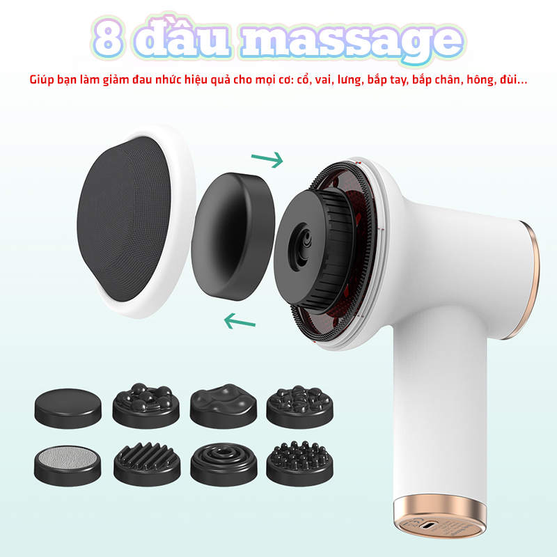 Máy massage cầm tay mini Puli PL-681DC - 8 đầu thay đổi