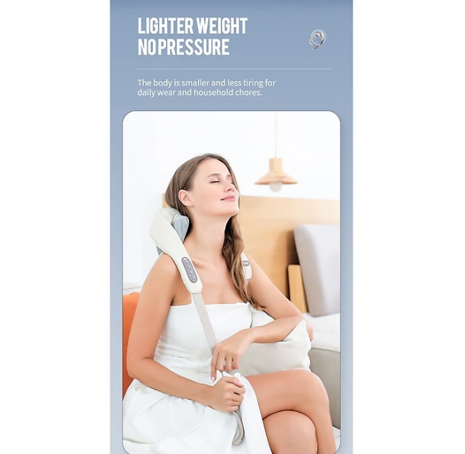 - Thiết kế quai đeo qua vai chắc chắn và tiện nghi giúp người dùng có thể linh hoạt sử dụng tại nhiều thời điểm khác nhau trong ngày, dễ dàng vừa mát xa vừa thực hiện các công việc nhẹ nhàng khác