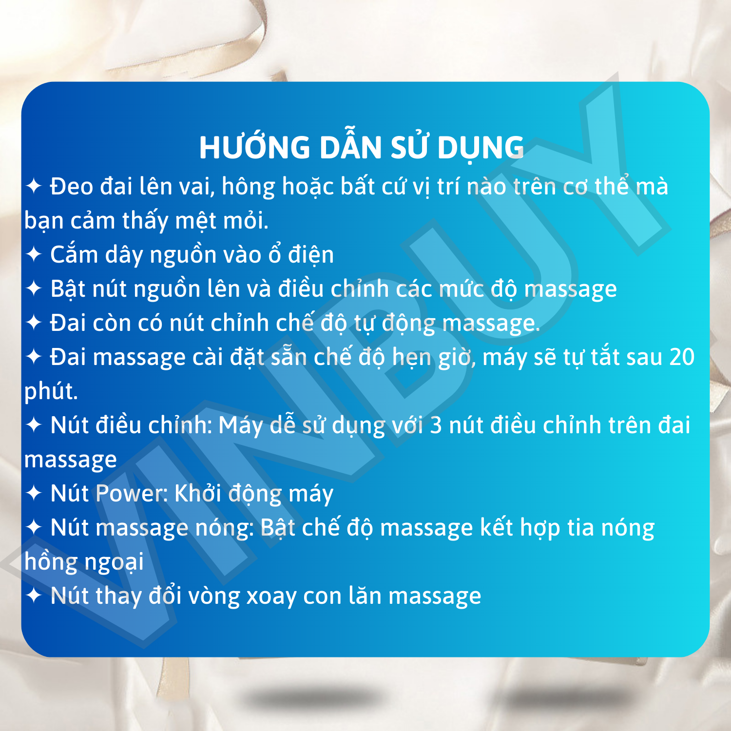 ĐAI MASSAGE ĐẤM BÓP LƯNG, VAI, GÁY, TOÀN THÂN - ĐM134: ️ Thiết kế nhỏ gọn, tiện lợi mang theo. ️ Thích hợp dùng cho cá nhân và gia đình ️ Đai có nhiều tốc