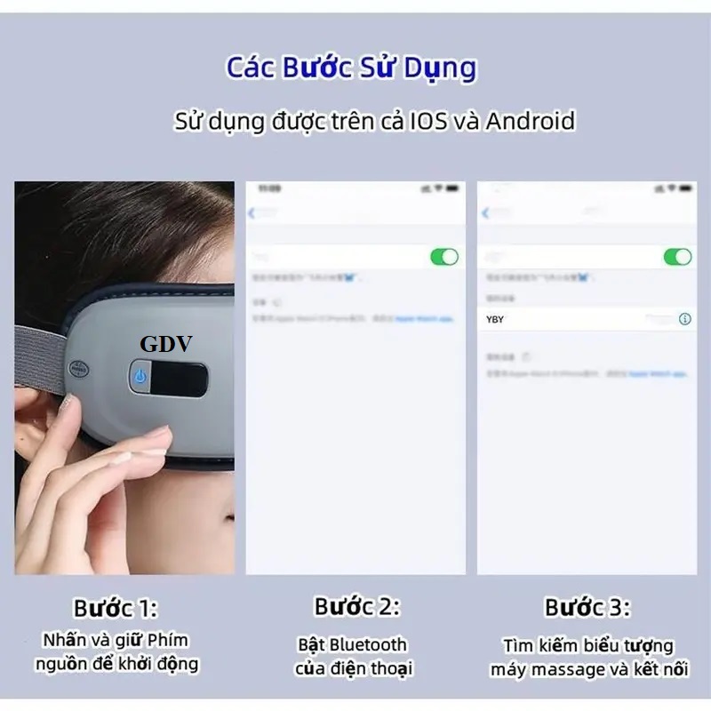 Máy Massage Mắt GDV Kết Hợp Chế Độ Rung Kết Nối Bluetooth, Làm Giảm Căng Thẳng Mệt Mỏi Và Lưu Thông Máu Cho Mắt - Hàng Chính Hãng công nghệ khí nén, Giảm quầng thâm,