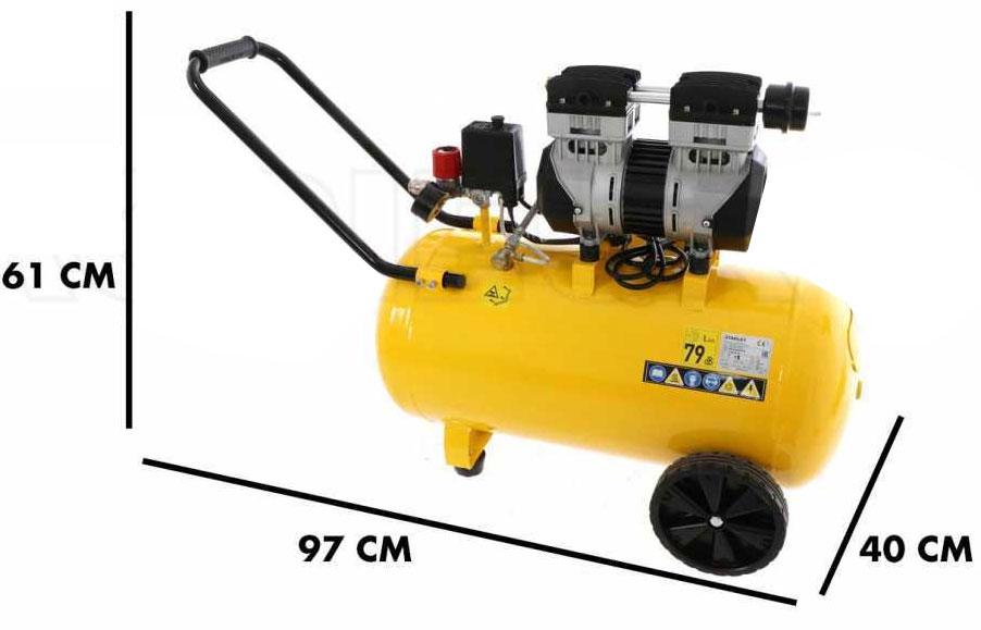Stanley SXCMS1350HE có dung tích bình khí 50 lít sẽ phù hợp với nhu cầu phun sơn, bắn đinh, nha khoa, thông tắc đường ố Máy nén khí vận hành với công suất 1.3HP giúp nạp khí nén nhanh và khỏe đạt 150 lít/phút. Khí nén sinh ra không chứa dầu, đảm bảo sạch sẽ, tốt cho sức khỏe. Kiểu dáng máy gọn nhẹ, rất tiện dùng di chuyển, chở trên xe gắn máy để đi công trình. Máy nén khí Stanley SXCMS1350HE nặng 28.2kg, có 2 bánh xe di chuyển. Đầu máy có đồng hồ đo áp suất và núm vặn chỉnh áp suất. Máy nén khí Stanley đạt tiêu chuẩn Châu Âu , áp dụng công nghệ giảm âm sẽ phát ra tiếng ồn không quá lớn. Máy sử dụng nguồn điện 220V, áp lực làm việc 8 bar