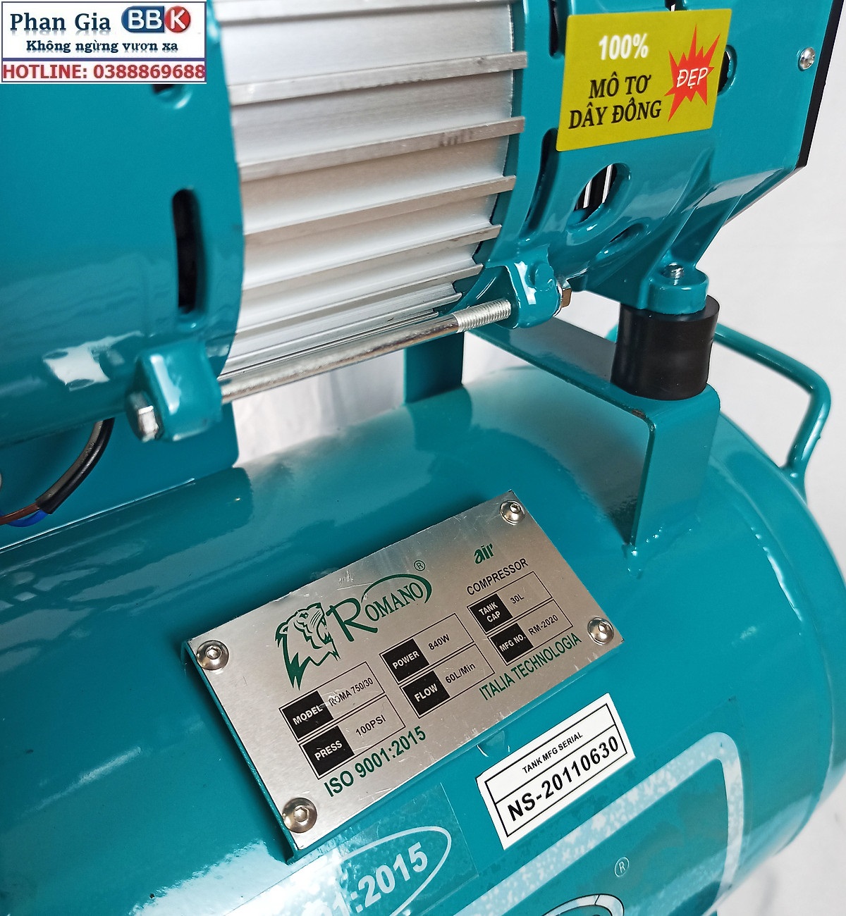 - Máy nén khí có dầu 30L/35L Romano sử dụng motor 100% dây đồng chất lượng cao, máy chạy khỏe và êm.
