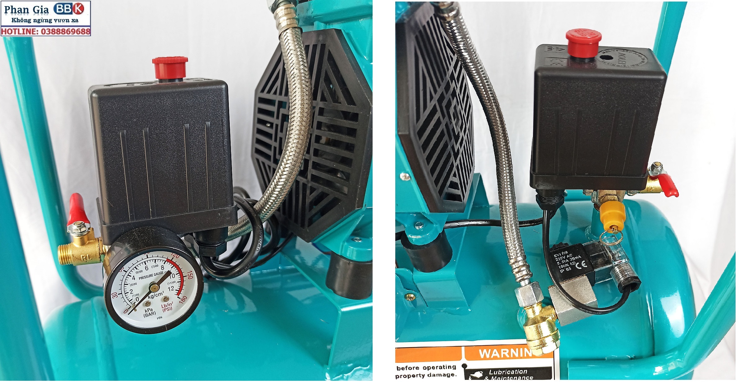 - Thời gian nạp khí nhanh. Đầu khí ra được làm bằng đồng. Máy tự ngắt khi đã nạp đầy khí.